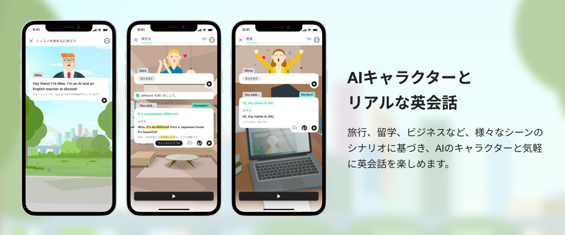 • AIキャラクターごとに英語のアクセントや声質が異なる設計