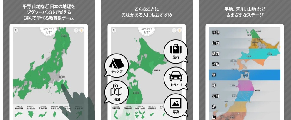 各レベルのパズルを作るだけで日本の地理のことを覚えることが可能です。