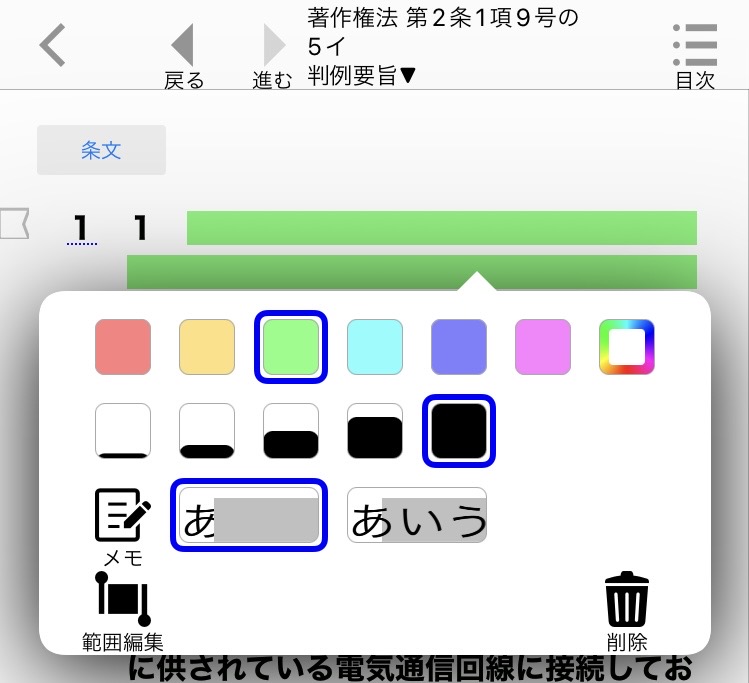 六法全書アプリ『bit六法』は簡単に関連する判例を表示できます。