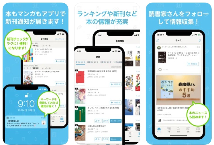 など新しい本に出会うための機能と登録する機能が豊富です。