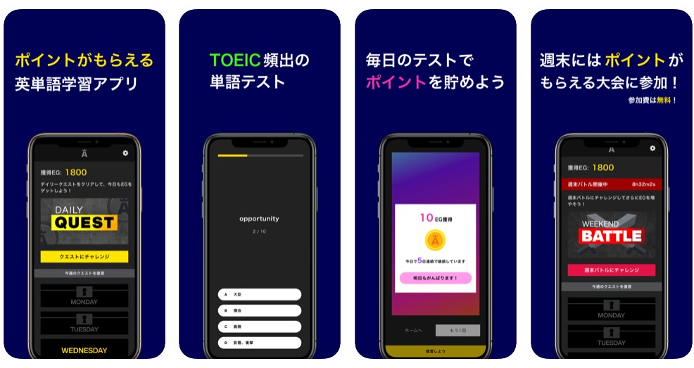 Amazonギフトが貰えるというモチベーションで英語の勉強を頑張ることが出来るアプリです。