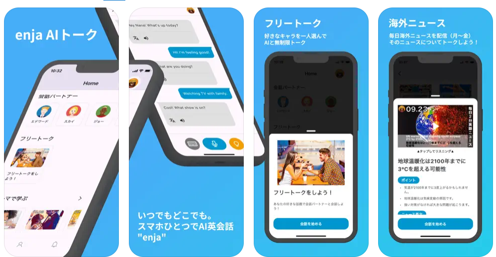 enja AIトークは5人のキャラクターと自由に英会話でので