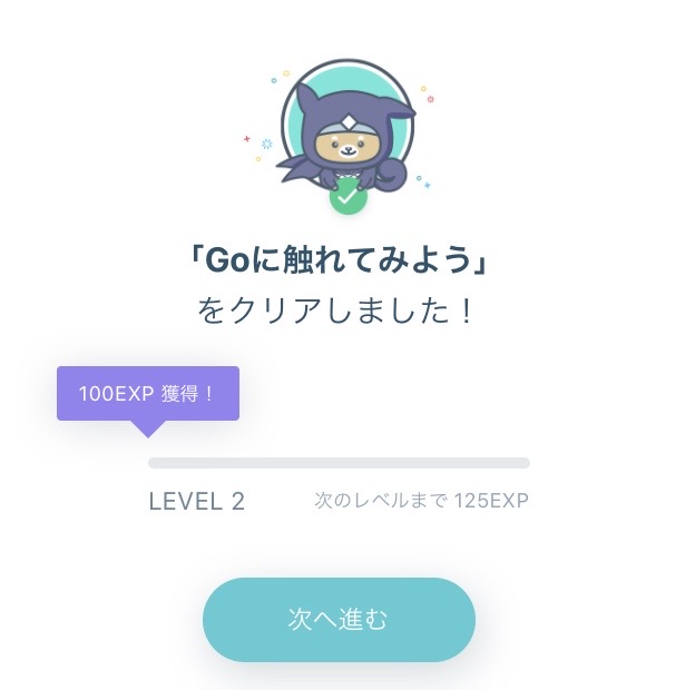 そこで『Progate』では演習をこなしていくと経験値が溜まりレベルがアップするようになっています。
