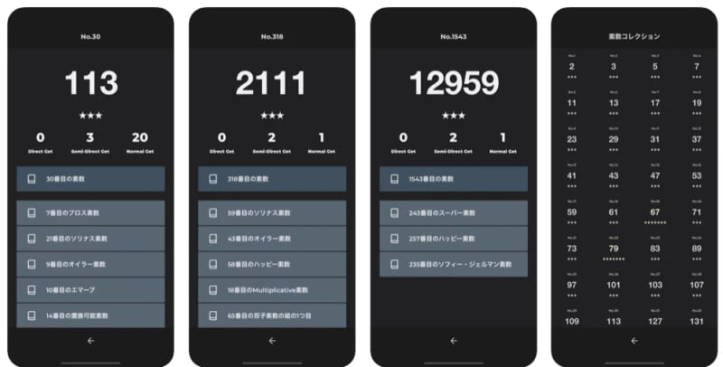 あとは自分がゲットした素数を『素数コレクション』で眺めることが出来ます。