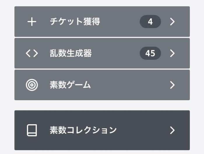 チケット獲得や乱数生成器でも素数を集めることが可能です。