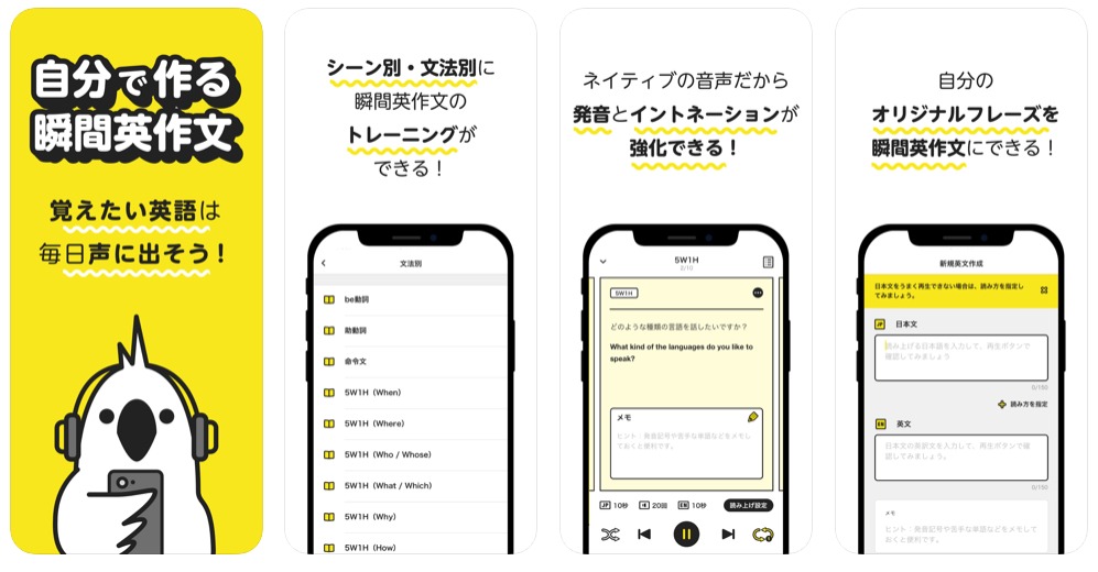 英語の勉強アプリ『自分で作る瞬間英作文』の機能