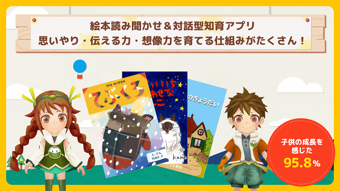 「KIKASETE」普通の絵本の読み聞かせではなく、問いかけを行うことで「考えて、伝える力」を伸ばす知育アプリです。