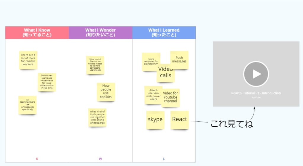 そういった時に、知らないことや知ってること、学んだことを共有するためにKWLチャートを活用すれば無駄が省けます。
